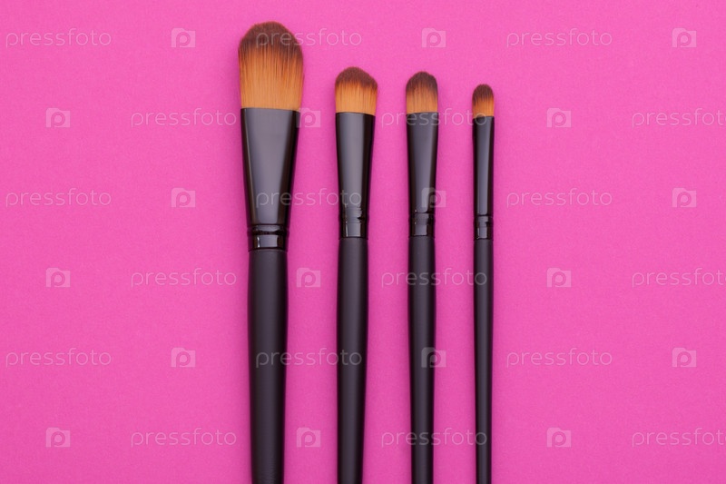 кисть на розовом фоне много кистей для макияжа