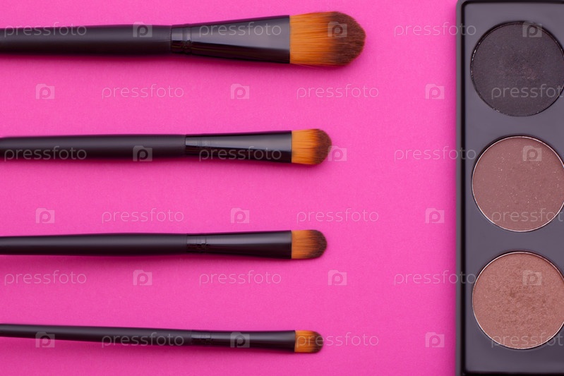 кисть на розовом фоне много кистей для макияжа