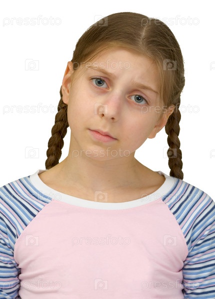 Портрет грустной девочки-подростка изолирован на белом фоне