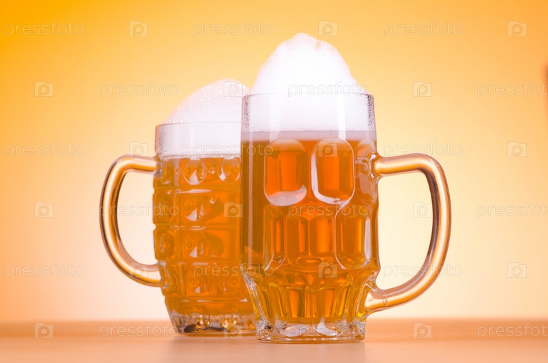 Две кружки пива на столе