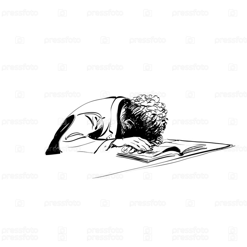 Школьник спит над учебниками