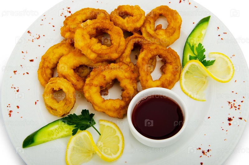 Кальмары в тесте на тарелке