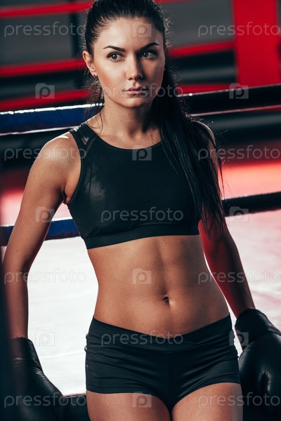 Спортивная девушка в боксерских перчатках