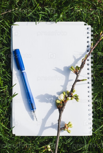 Ручка и блокнот на траве