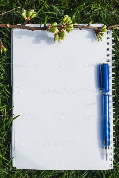 Ручка и блокнот на траве