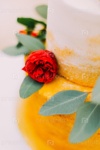Красная роза на свадебном торте
