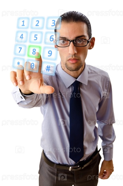 Бизнесмен нажимает виртуальную кнопку