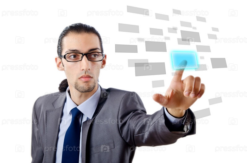 Бизнесмен нажимает на виртуальные кнопки