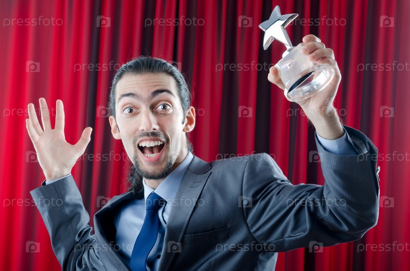 Бизнесмен с наградой в руках