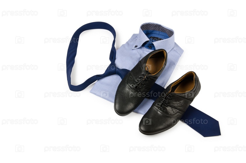 Ботинки, рубашка и галстук на белом фоне