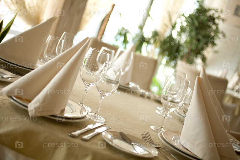 Формальное установление стола в ресторане сосредоточиться на очках спереди