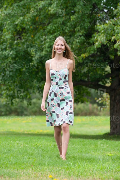 Красивая девушка идет по летнему парку