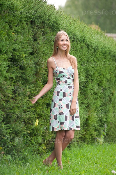 Молодая женщина в летнем платье в парке