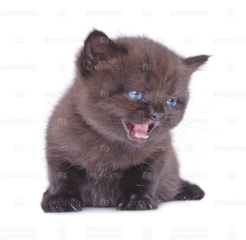 Котенок с открытым ртом и розовым языком