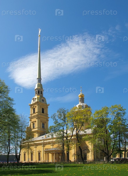 Петропавловская крепость в Санкт-Петербурге на фоне облачного неба