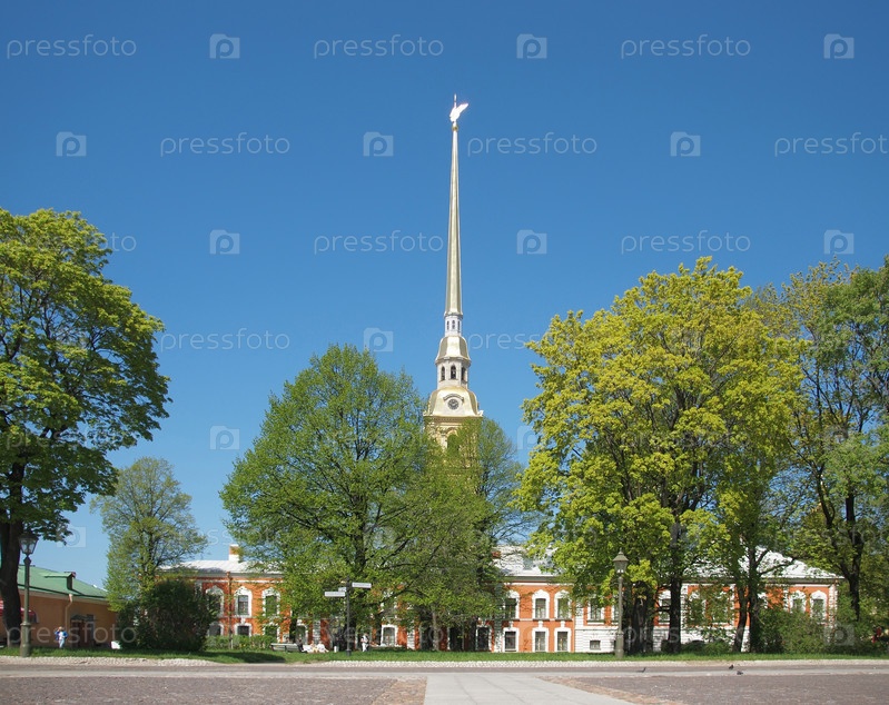 Петропавловская крепость в Санкт-Петербурге на фоне голубого неба