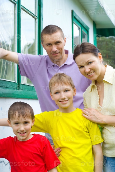 Портрет счастливой семьи на открытом воздухе