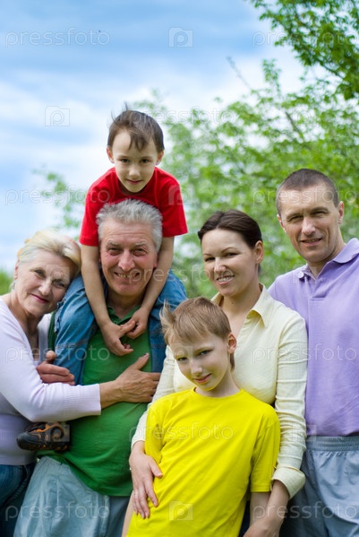 Портрет счастливой семьи на природе