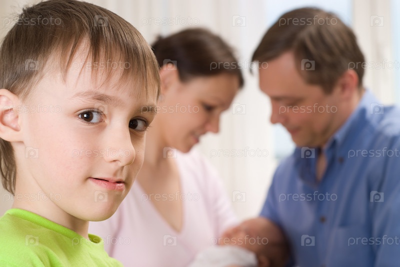 Мальчик на фоне его семьи