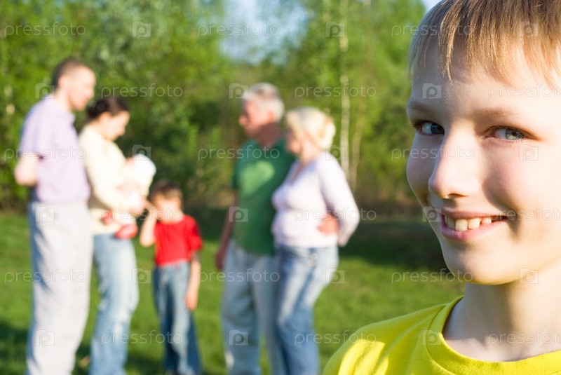 Семья из семи человек на природе