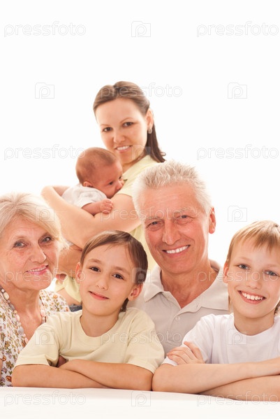 Счастливая семья на белом фоне