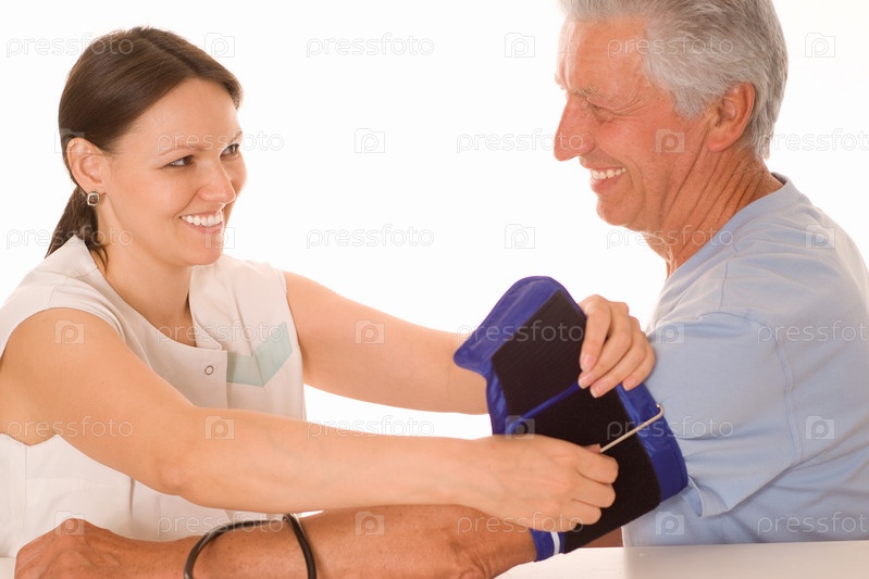 Молодая женщина-врач измеряет давление