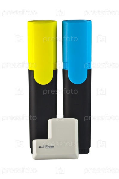 Два маркера и кнопка ввода на белом фоне