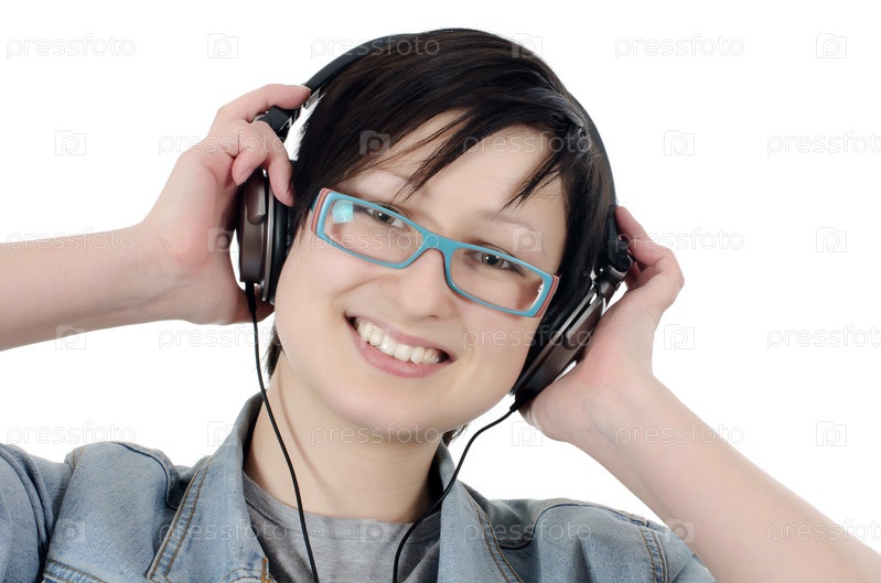 Девушка слушает музыку в наушниках