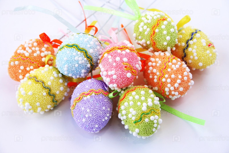 Красочные пасхальные яйца на сером фоне