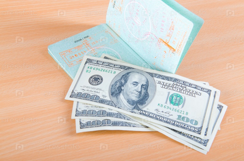 Паспорт с печатями и доллары