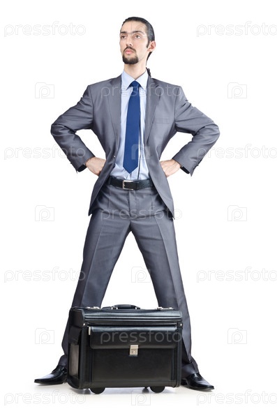 Бизнесмен с чемоданом на белом фоне