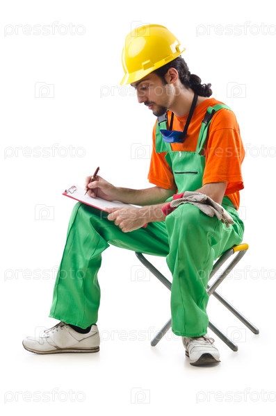 Строитель на белом фоне