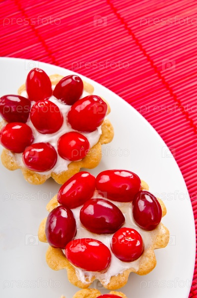 Пирожные с ягодами на тарелке