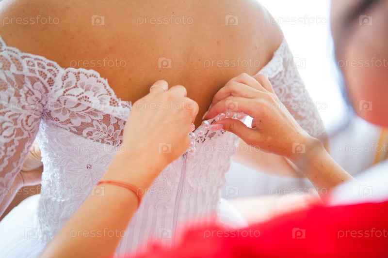 Невесте помогают надеть платье