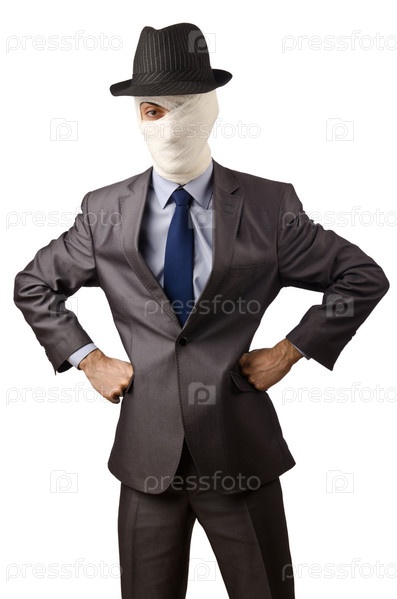 Человек с перебинтованным лицом