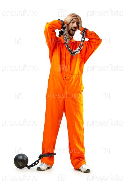Осужденный в кандалах на белом фоне