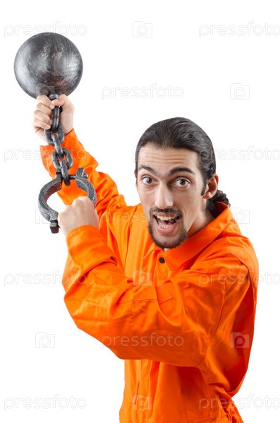 Осужденный с кандалами на белом фоне