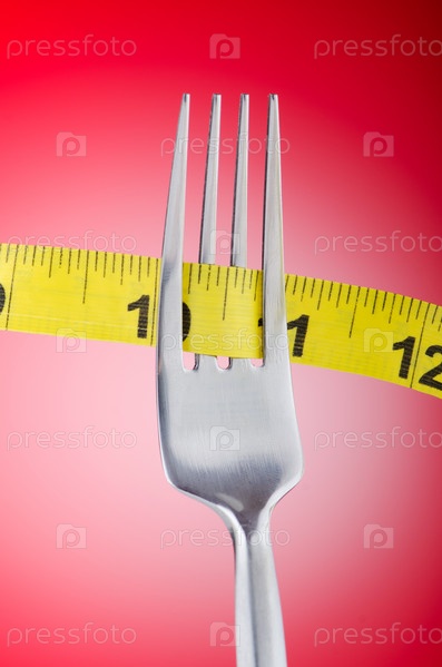 Концепция диеты: вилка с сантиметровой лентой
