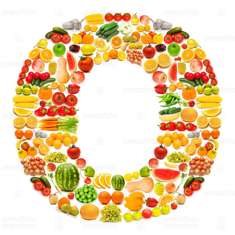 Буква O из фруктов и овощей
