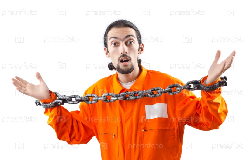 Осужденный преступник на белом фоне
