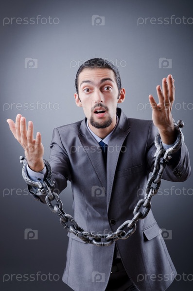 Бизнесмен в наручниках на белом фоне