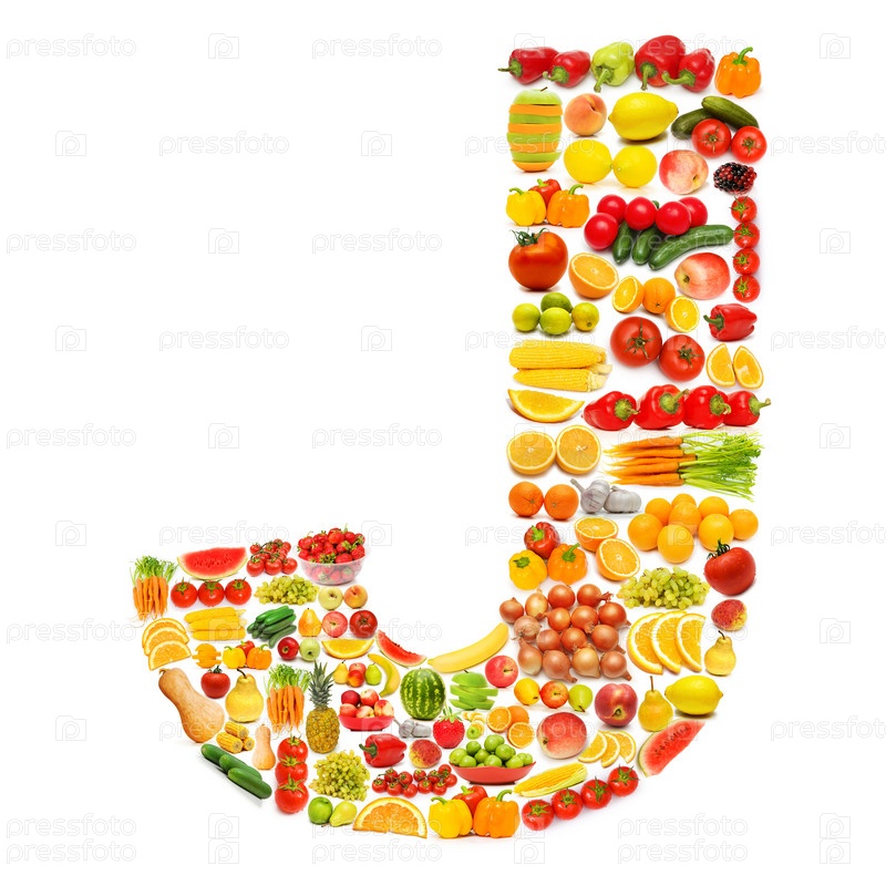 Буква J из фруктов и овощей