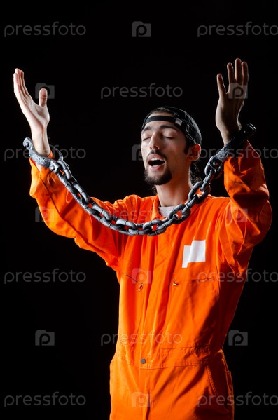 Осужденный преступник на черном фоне
