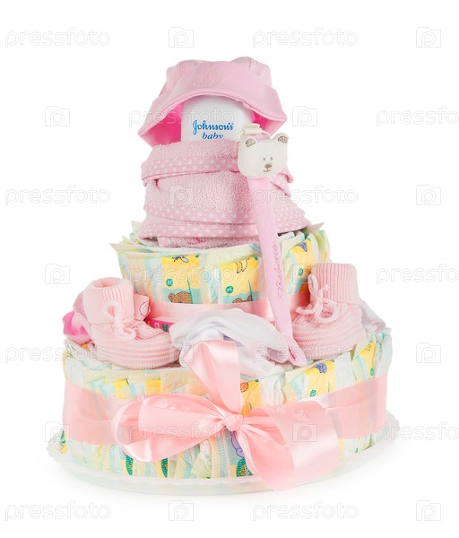 Торт из памперсов на белом фоне