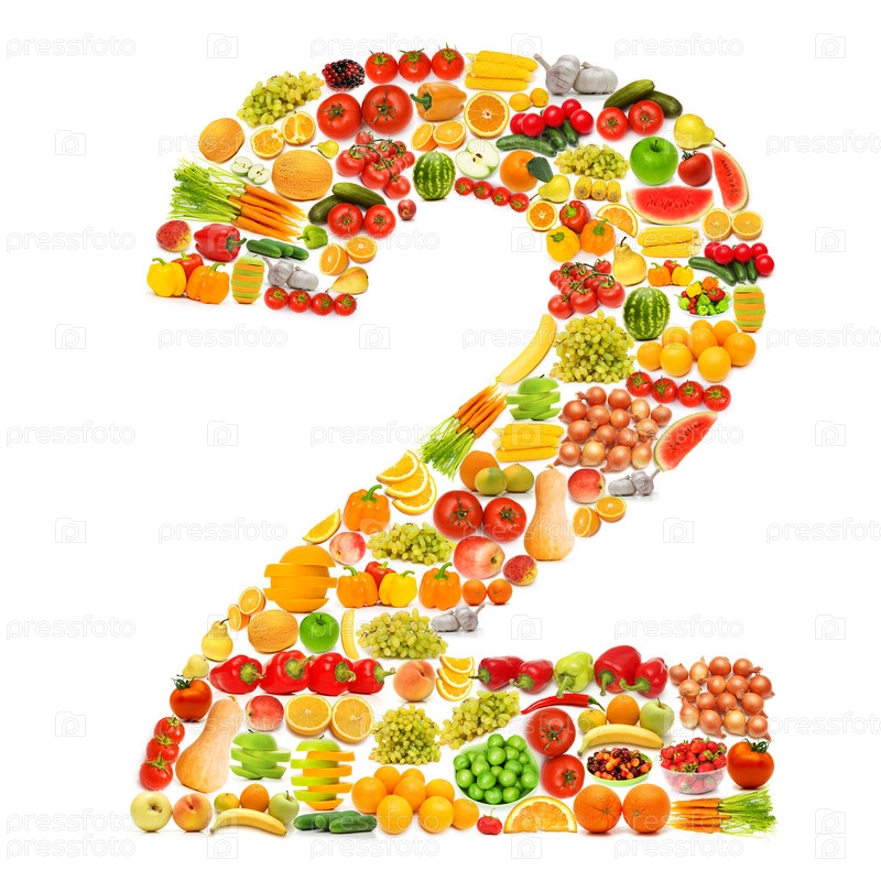Цифра 2 из фруктов и овощей