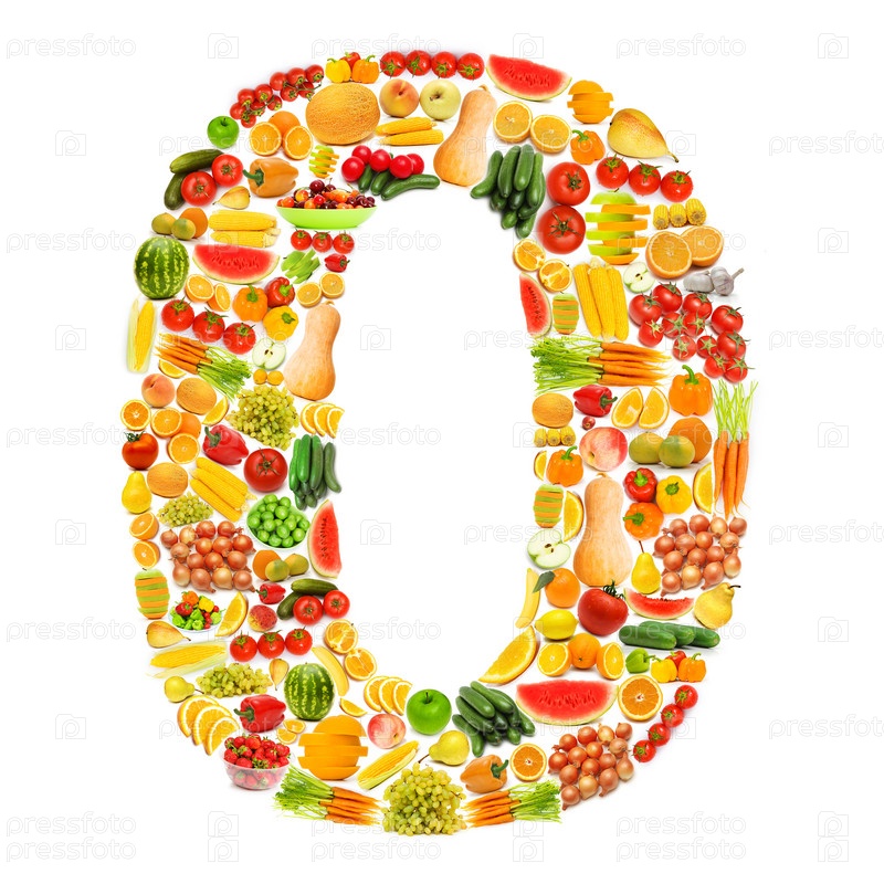 Цифра 0 из фруктов и овощей