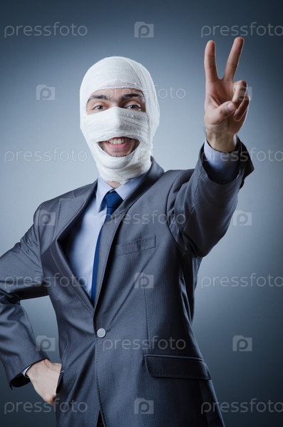 Мужчина с забинтованным лицом