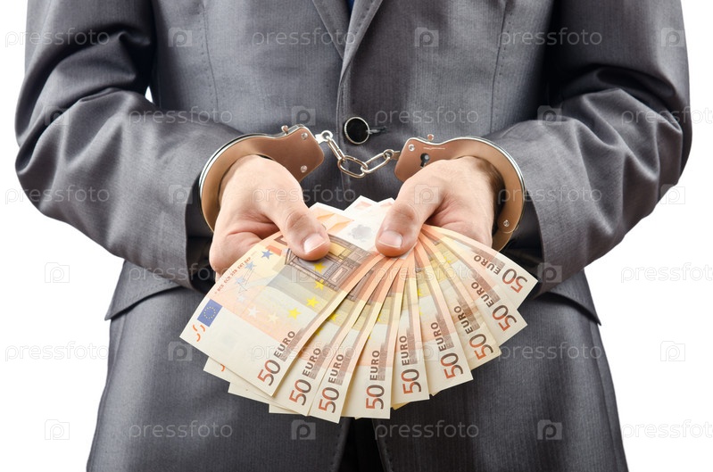 Мужчина в наручниках с банкнотами евро