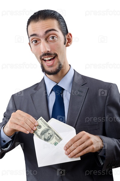 Предприниматель кладет доллары в конверт