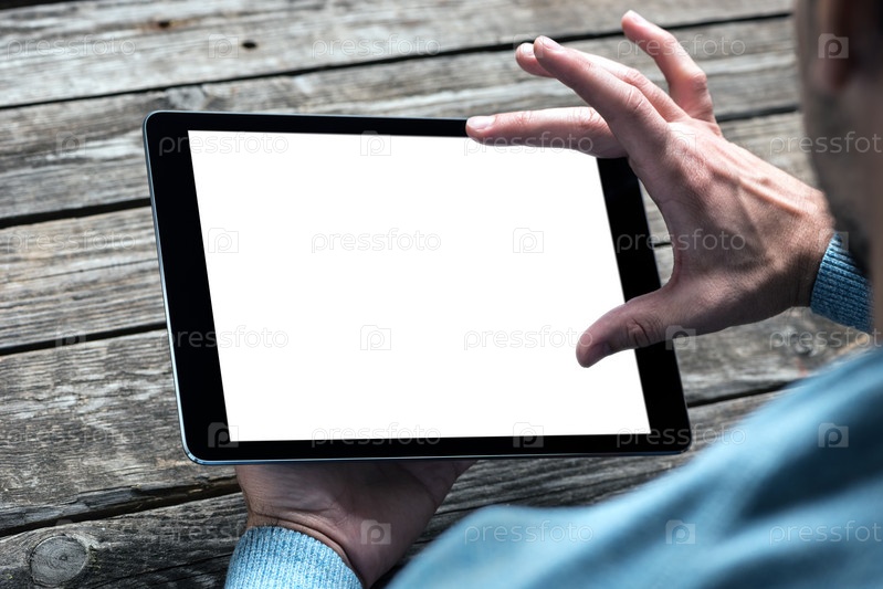 Планшетный ПК в мужских руках